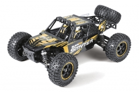 Model Desert buggy v měřítku 1:12 s pohonem všech kol 4x4, poháněný stejnosměrným motorem 390 vč. RC volantové soupravy 2,4 GHz a pohonného akumulátoru. Voděodolný regulátor a přijímač.
