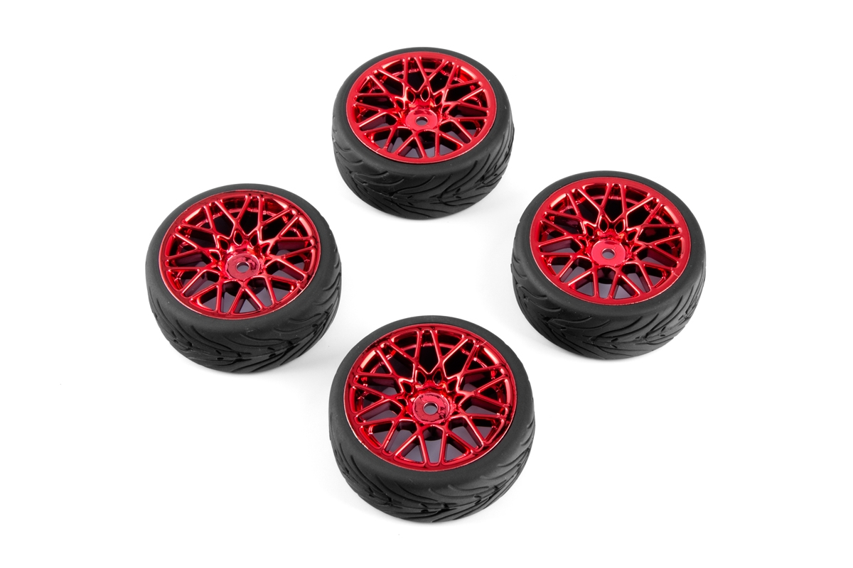 Spec T LS Wheel Offset 3 Red w/Tire 4ks pro 1/10 Silniční