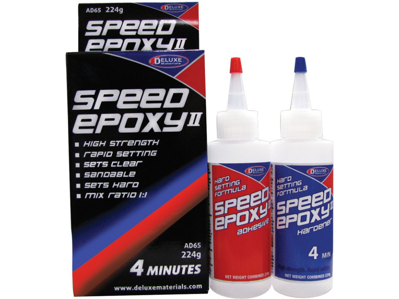 Epoxidové lepidlo Speed Epoxy II 4 min je vhodné pro díly, které jsou vystaveny vibracím. Vytváří dlouhodobě pružné a pevné spojení. Speed Epoxy II 4 min by neměl být použit pro lepení v místech, které podléhají dlouhodobému působení vody - např. ponořené části lodí. Ale bez problému může být použit pro lepení vnitřních částí trupů lodí. Lepí i polyesterové pryskyřice. Po smíchání s mikrobalony lze vytvořit rychlý správkový tmel. Spoj lze namáhat po 15 minutách, plná pevnost je dosažena po 1 hodině.