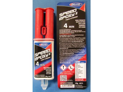 Epoxidové lepidlo Speed Epoxy II 4 min je vhodné pro díly, které jsou vystaveny vibracím. Vytváří dlouhodobě pružné a pevné spojení. Speed Epoxy II 4 min by neměl být použit pro lepení v místech, které podléhají dlouhodobému působení vody - např. ponořené části lodí. Ale bez problému může být použit pro lepení vnitřních částí trupů lodí. Lepí i polyesterové pryskyřice. Po smíchání s mikrobalony lze vytvořit rychlý správkový tmel. Spoj lze namáhat po 15 minutách, plná pevnost je dosažena po 1 hodině.