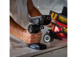 Vysílač iXSR+ je dokonalým důvtipným řešením pro RC auta, lodě a makety. 12 proporcionálních kanálů umožňuje řízení pokročilých funkcí modelů, např. osvětlení, převodovky, uzávěrek diferenciálů, samostatné řízení brzd, zatáčení zadních kol nebo oddělené řízení předních kol. Díky frekvenčně agilní technologii DSMR+ 2,4GHz a nově i STL můžete vysílač použít v různých typech modelů, včetně lodí. Jeho dosah a odezva, zejména v zatíženém prostředí 2,4GHz, jsou skvělé. Výhodou je intuitivní software, jednoduché programování pomocí dotykového displeje.