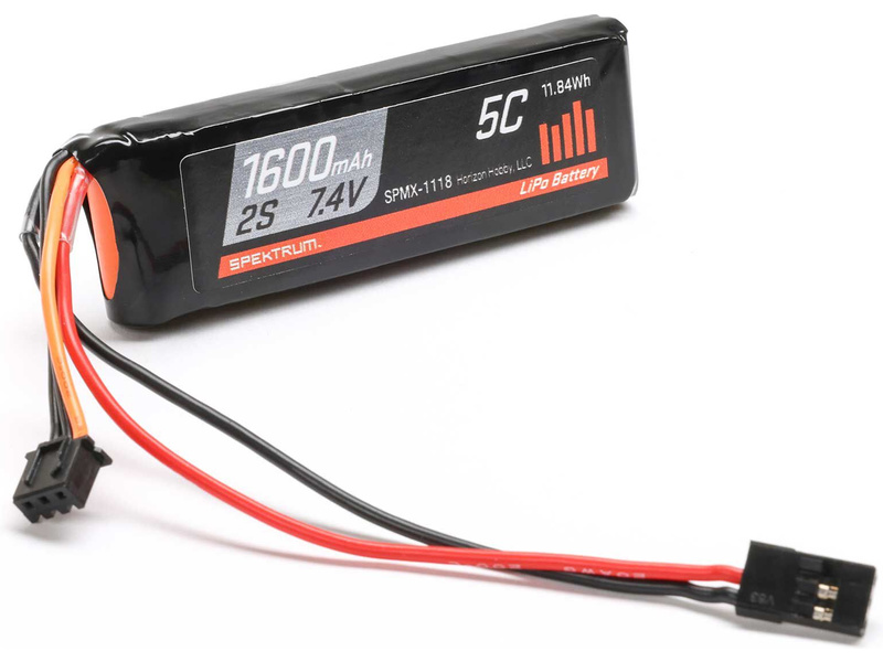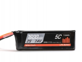 LiPo akumulátor Spektrum 7,4 V 1600 mAh 5C pro napájení RC přijímačů. Akumulátor je osazen přijímačovým JR konektorem a balančním konektorem JST-XH.
