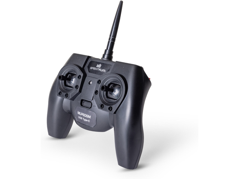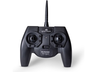 Šesti-kanálový vysílač Spektrum MLP6 v módu 2 (plyn na levé ruce) pro menší modely od Horizon Hobby. Vysílač má telemetrii, pomocí LED diody a zvukové signalizace indikují napětí pohonného akumulátoru u kompatibilních modelů. Nový USB-C konektor pro ovládání simulátoru.