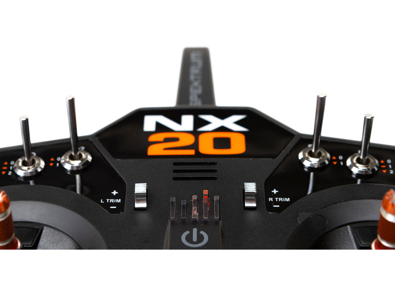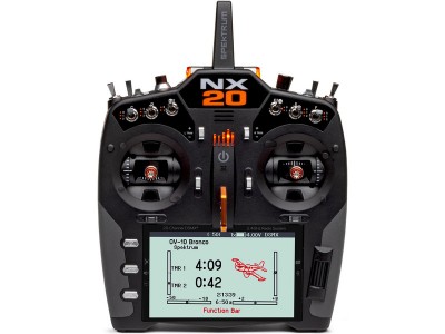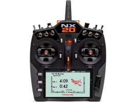 20-kanálový vysílač Spektrum NX20 DSMX s nejnovějšími exkluzivními technologiemi. Připojení Wi-Fi, velký 5" barevný podsvícený displej, LiIon baterie, kompatibilita Smart Technologie, porty USB a možností připojení WiFi pro registraci, aktualizaci vysílače, integrovaná paměť pro 250 modelů, dostupné šablony modelů pro letadla BNF®, exkluzivní programovací software Spektrum Airware™.