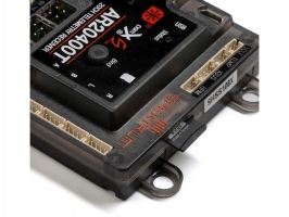 Přijímač AR20400T s 20 kanály a telemetrií (SRXL2). Redundantní napájení dvěma bateriemi (IC3). Určeno pro větší modely s více servy s vysokým proudovým zatížením až 35A. Micro USB konektor, slot na SD kartu pro záznam dat. Bartometrický senzor.