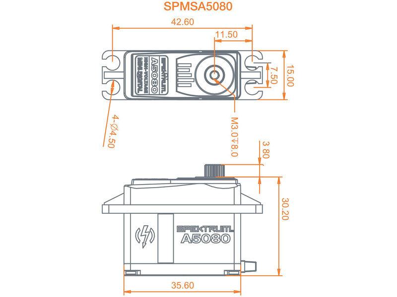 Servo Spektrum A5080 má spolehlivý výkon, digitální přesnost a úžasnou účinnost. Jemně naladěná elektronika a software s výkonnou technologií bezkartáčových motorů, nabízí větší přesnost a výkon než serva s běžnými motory. Celohliníkové pouzdro poskytuje odvod přebytečného tepla, zatímco přesné kovové převody zajišťují vysokou míru trvanlivosti. Proto je servo A5080 vhodné do modelů letadel i vrtulníků.