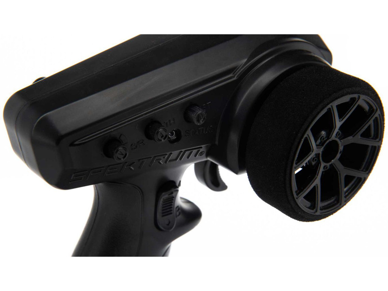 Nízká hmotnost vysílače Spektrum SLT3 umožňuje držení bez únavy. Volant je potažen pěnovou obručí a zajišťuje neklouzavost. K dispozici je rovněž praktický držák pro připevnění karabinky s páskem, takže se můžete soustředit na řízení bez obav z pádu vysílače a jeho poškození. Podporuje protokol SLT 2.4GHz.
