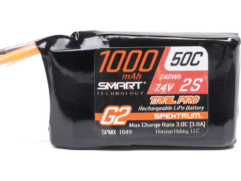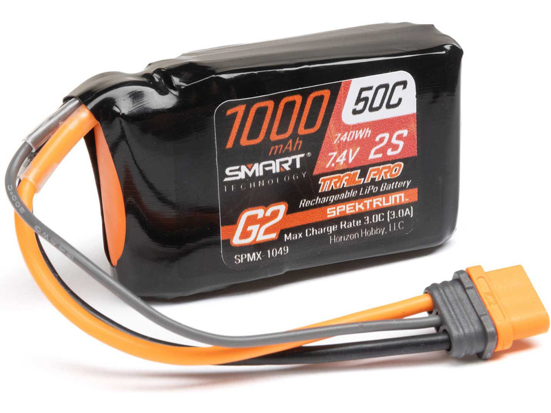 LiPo akumulátor Spektrum Smart G2 Trail Pro LiPo 7.4V 1000mAh 50C IC2 je novou generací akumulátorů bez konektoru balencéru, s datovým kabelem IC2. Vyžadován je nabíječ Spektrum™ Smart. Integrovaný mikročip ukládá jedinečné parametry každé baterie, technologie Smart pro jednoduché nabíjení.