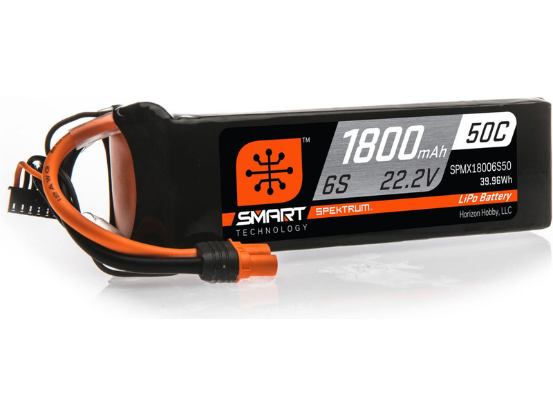 LiPo akumulátor Spektrum 22,2 V 1800 mAh 50C s technologií Smart pro RC letadla a vrtulníky. Technologie Smart zjednodušuje a zrychluje nabíjení a prodlužuje životnost akumulátoru. Konektor IC3.