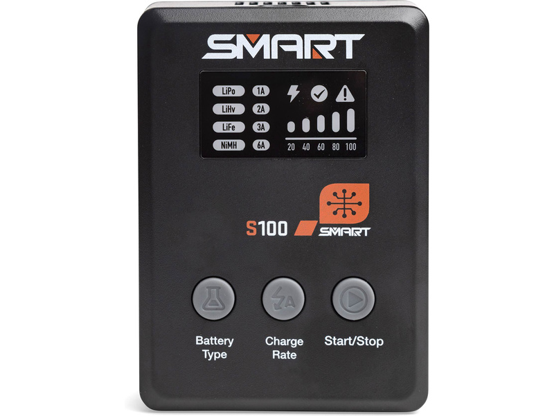 Nabíječ S100 je napájen přiloženým Spektrum™ 65W zdrojem a je praktickým nabíjecím řešením pro začátečníky. Vše, co potřebujete, je v balení. Baterie Smart G2 mají datový kabel s jedním jednoduchým připojením konektoru IC3® nebo IC5® – není proto potřeba samostatný balanční kabel. Můžete použit k nabíjení mnoha standardních hobby baterií 1S-4S LiPo, LiIon, LiHV, LiFe. Poznámka: S100 nebude nabíjet baterie jiné značky než Smart NiMH.