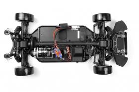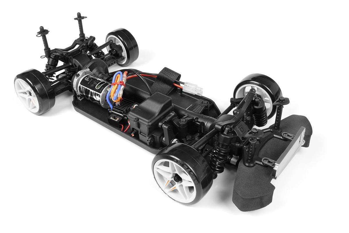 Pod kapotou má tento driftovací stroj v měřítku 1:10 podvozek HPI Racing Sport 3 Touring Car. Díky stálému pohonu 4WD, plně utěsněnému hnacímu ústrojí, vodotěsné elektronice a rádiovému zařízení 2,4 GHz, nezávislému zavěšení kol a nastavitelným tlumičům s olejovou náplní je připraven driftovat, kdykoli budete chtít!