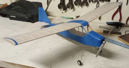 Na snímcích v galerii je model, který postavil můj slovenský zákazník. Upravil si jej a poutání křídla gumou nahradil kolíkem v náběžné hraně křídla a hliníkovým šroubem na úrovni odtokové hrany. I přes tuto úpravu jeho model s baterií 2S/400mAh váží 151gr.