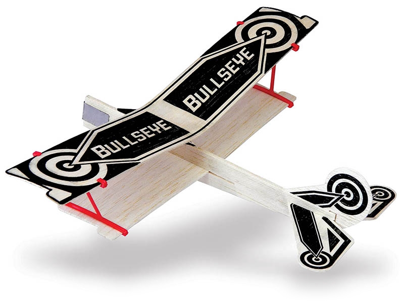 Stavebnice dvojplošného skládacího házedla o rozpětí 305 mm pro superhrdiny všeho věku z předseknutých balsových dílů.