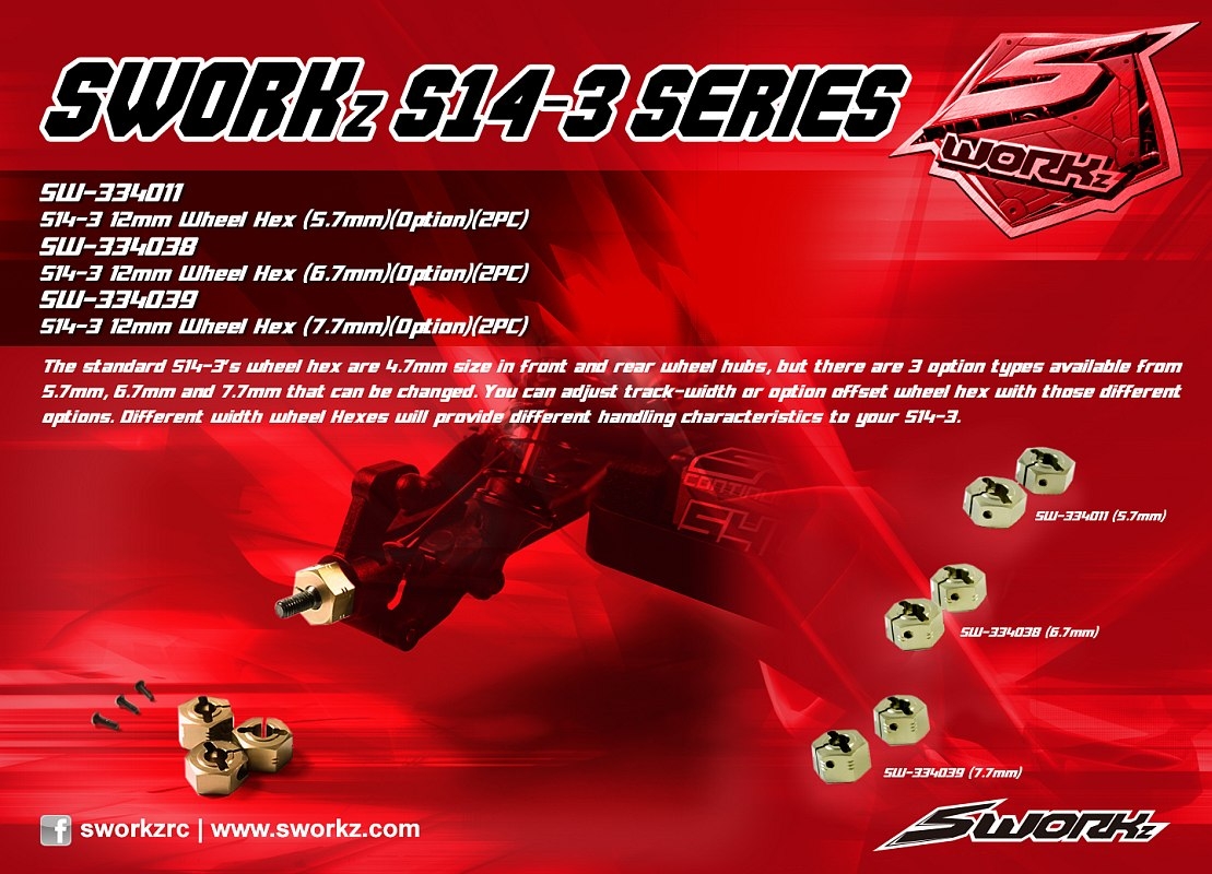 SWORKz S14-3 12mm hliníkové unašeče kol 7,7 mm, 2 ks.