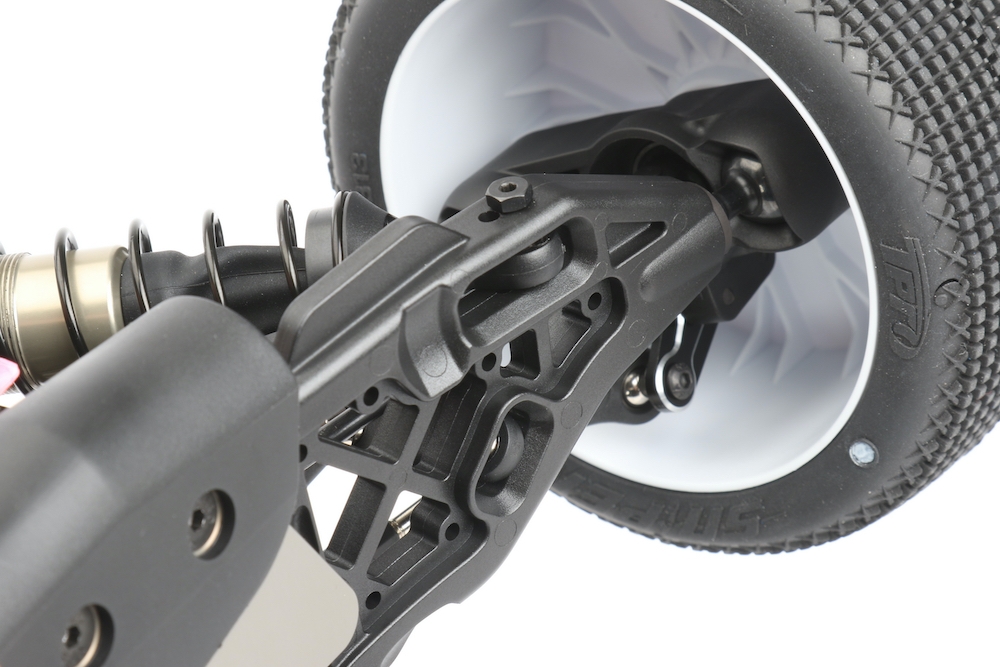 Uchycení ramen, která nyní obsahují čtvercové vložky, umožňují přizpůsobit geometrii vašeho SWORKz S35-4 tak, aby vyhovovala jakémukoli uspořádání a stavu trati. Přední a zadní ramena jsou vyrobeny z nově vyvinutého kompozitního materiálu a přesně odpovídají nové geometrii podvozku. Stejným způsobem byly přepracovány i bočnice.