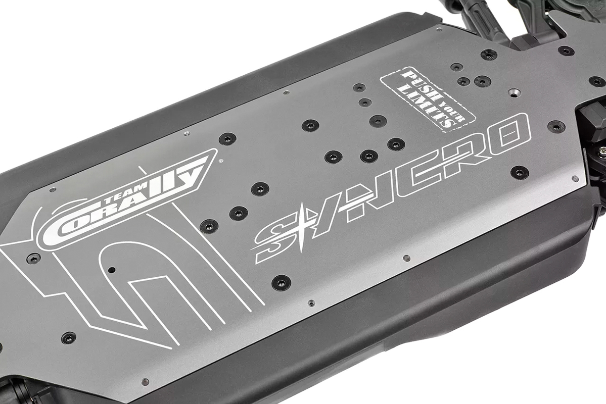 Každá součástka modelu Syncro je navržena s ohledem na odolnost a výkon. Jeho robustní systém zavěšení, inspirovaný vysoce výkonnou řadou 6S týmu Corally, obsahuje odolná ramena zavěšení, zesílené bloky řízení a odolné zadní těhlice. Tyto komponenty pracují v harmonii, aby si model snadno poradil se skoky, nerovnostmi a náročným terénem. Big Bore kompozitové tlumiče a robustní věže tlumičů udržují stabilitu modelu, zatímco lehký, ale pevný podvozek zajišťuje, že je připraven zvládnout jakékoli dobrodružství. Přidejte funkce, jako je kluzná spojka a ocelové převody a výsledkem je zábavná a spolehlivá buggy Syncro.
