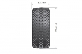 Kompletní kola pro truggy 1/8. Pneumatiky vhodné do sucha i do mokra, pro tvrdou i prašnou hlínu a podobné povrchy, včetně trávy. Disky pro 17mm hex unašeče.