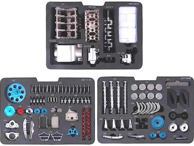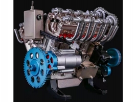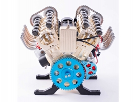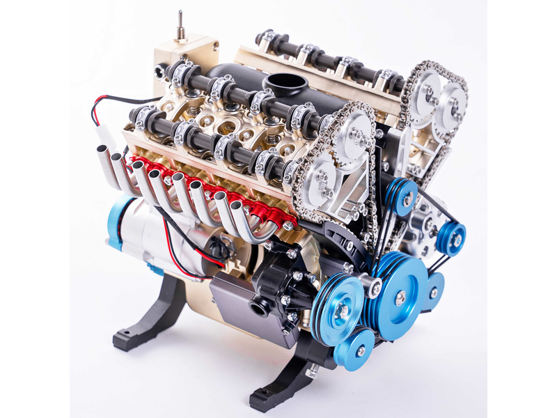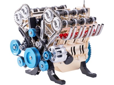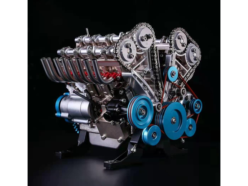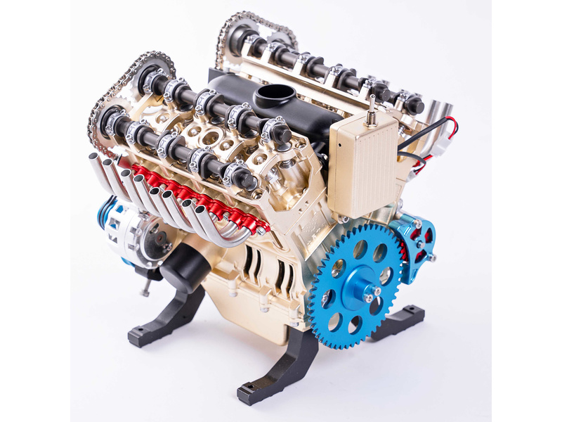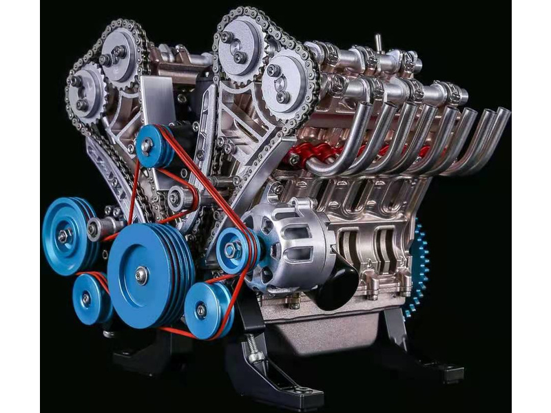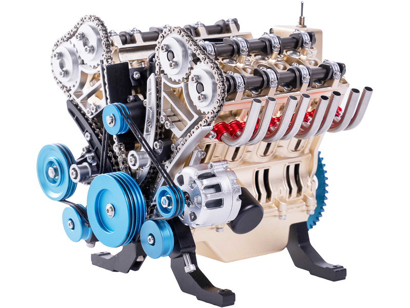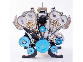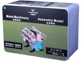 Stavebnice precizního kovového modelu Teching motor V8. Autenticky zpracovaná konstrukce skutečného motoru s otevřenou hlavou. Model nabízí realistické mechanické funkce - pohyb pístů, ventilů, hřídelí a rozvodů. Elektrické otáčení motoru. Výstavní model.