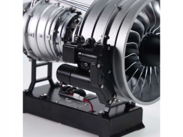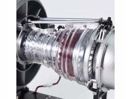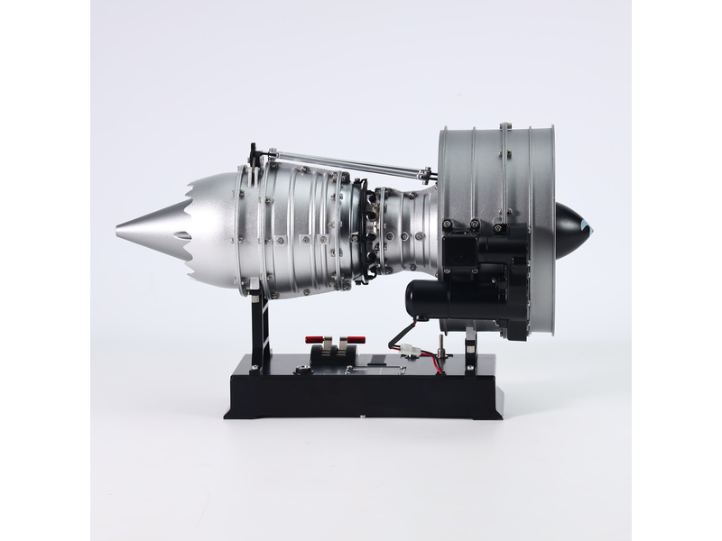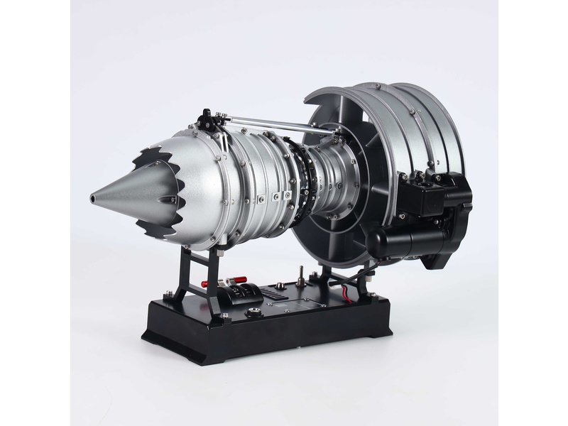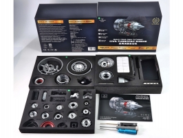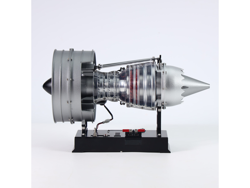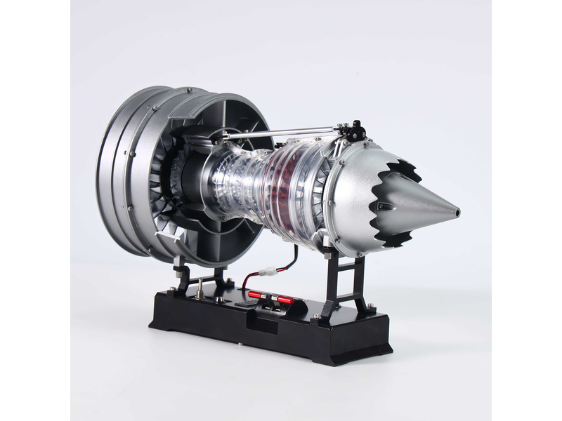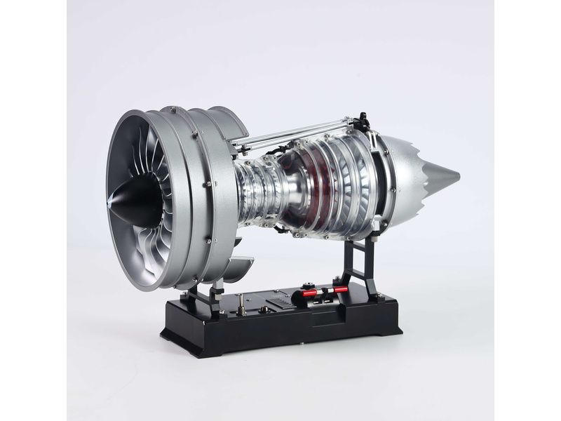Stavebnice precizního kovového modelu Teching - proudový motor 1:15. Autenticky zpracovaná konstrukce skutečného motoru s čirým krytem pro ukázku provozu. Model nabízí realistické mechanické funkce - pohyb rotoru všech stupňů. Elektrické otáčení motoru. Výstavní model.