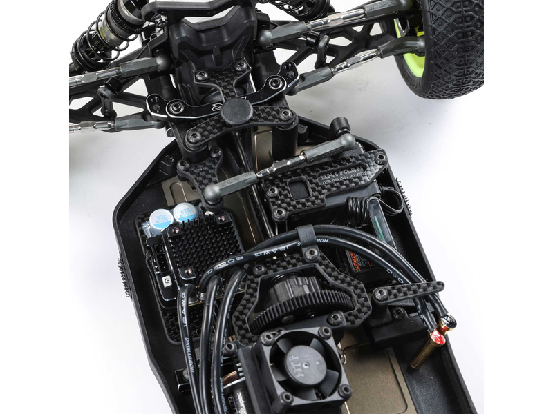 Všechny důležité tuningové díly, které tovární jezdci TLR používali při závodech jsou již obsaženy v tomto modelu. Jedná se o díly z prvotřídních materiálů jak je hliník, uhlíkové vlákna a titan.