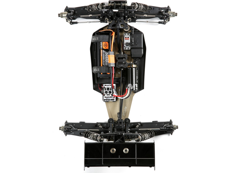 Pro závodní ježdění je nutné provést přesné seřízení modelu a mezi jeden z nejdůležitějších předpokladů pro stabilní skoky je správné vyvážení podvozku. I na toto inženýři TLR mysleli a připravili návrh pro rozvržení komponent na podvozku pro hotové použití.