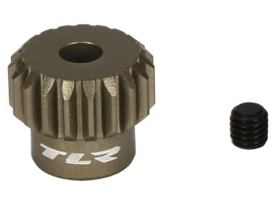 TLR pastorek na hřídel 3.17 mm (1/8") s 19 zuby a modulem ozubení 48DP pro RC modely aut. Vyrobeno z hliníkové slitiny. Součástí balení je červík.