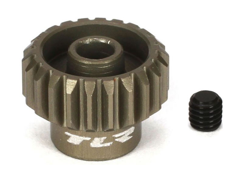 TLR pastorek na hřídel 3.17 mm (1/8") s 22 zuby a modulem ozubení 48DP pro RC modely aut. Vyrobeno z hliníkové slitiny. Součástí balení je červík.