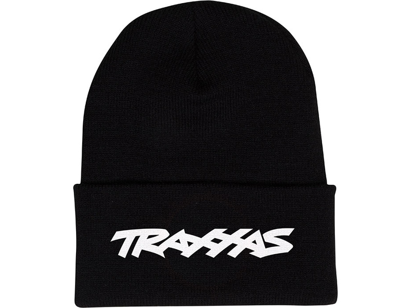 Praktická kvalitní čepice v černé barvě s bílým logem Traxxas pro závodní jezdce, materiál 100% Hypoalergenní Akryl.