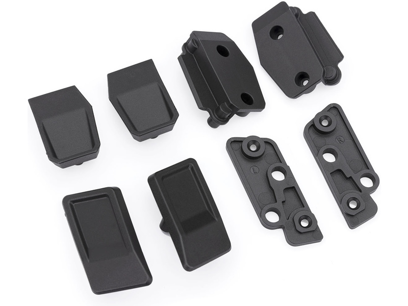 Kompletní sada držáků západek (přední a zadní, levá a pravá), pro bezsponkovou karoserii modelu Traxxas Slash 1:10 BL-2S. Náhradní díl. Vyžaduje karoserii se zobáčky #6967.