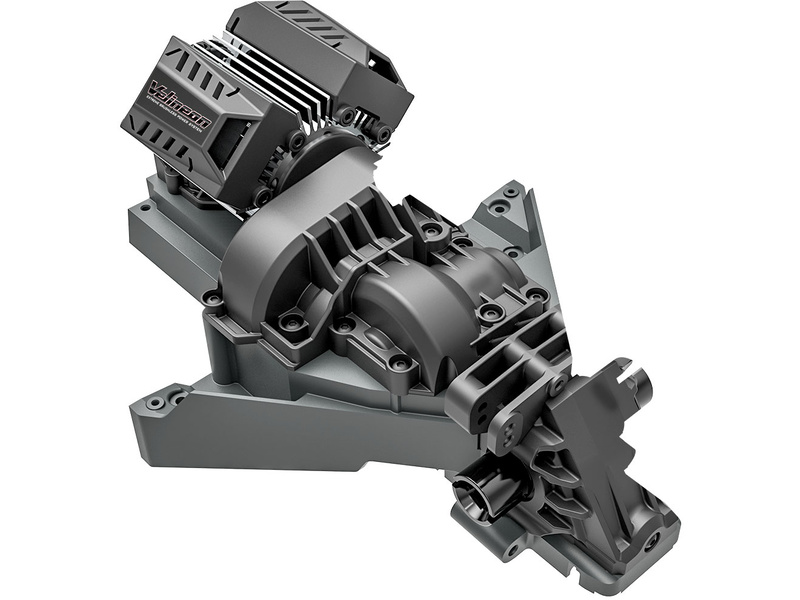 S výkonem střídavého motoru, napájeným více než 30V, který směřuje pouze na zadní kola, je potřeba extrémně odolná mechanika. Uvnitř masivně zesíleného pouzdra převodovky přenášejí obří převody s modulem ozubení M1.5 sílu hladce i jistě. Diferenciál z modelu X-Maxx s většími výstupními hřídeli propojuje ocelové poloosy a tvoří tak nejodolnější pohonnou soustavu, jaká kdy byla instalována do modelu Traxxas.