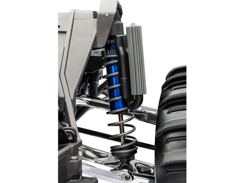 Masivní tlumiče GT Maxx jsou přesně navrženy a naladěny pro tento velký model. Tvoří je hliníkové, barevně eloxované tělo, pevné ocelové pístnice s kulovými čepy, masivní pružiny a přesné těsnící X-kroužky. Pro správnou funkci jsou tlumiče naplněny olejem s optimální viskozitou. Maketový vzhled doplňují imitace přídavných nádržek oleje.