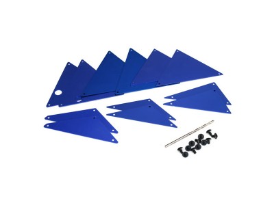 Náhradní díl pro RC model auta Unlimited Desert Racer: Traxxas hliníkové vnitřní panely šasi modrý elox. 2ks přední, kryty kol 4ks, střední 4ks, zadní 2ks.