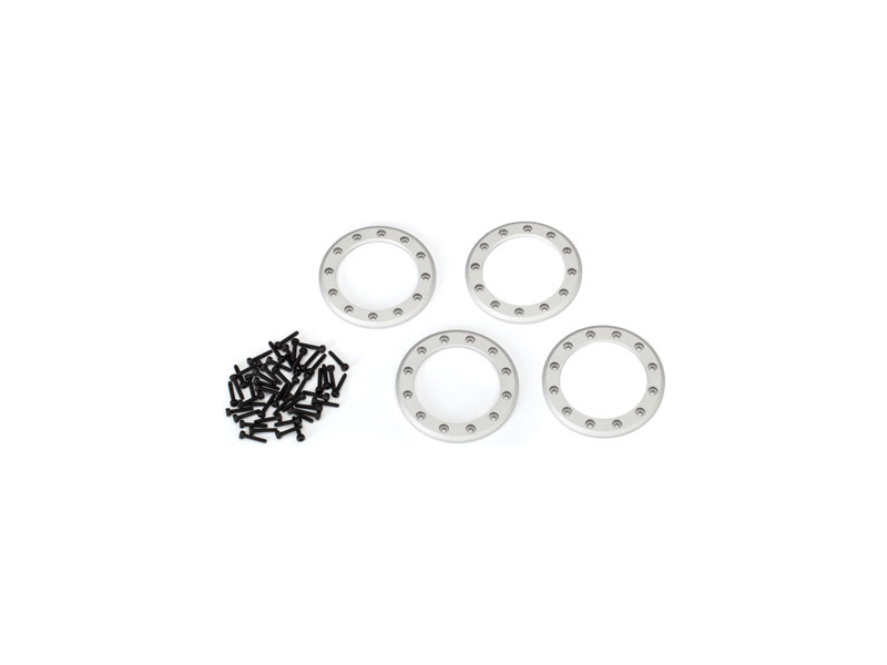 Traxxas hliníkový výztužný bead lock kroužek disků kol Method 105 1.9". Šedě eloxovaný povrch. Balení obsahuje celkem 4 kusy kroužku se sadou šroubů M2x10 mm se zapuštěnou hlavou.