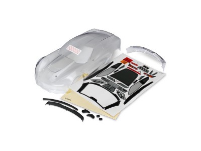 Traxxas karosérie Chevrolet Corvette Z06 čirá + samolepky je tuning pro RC modely aut Traxxas na podvozku 4-Tec 2.0 1:10, 4-Tec 2.0 Ford GT 1:10 a 4-Tec 2.0 Ford Mustang GT 1:10.