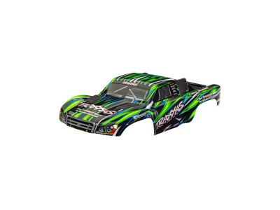 Traxxas karosérie Slash 4X4 zelená (bezsponková) (také vhodná pro Slash VXL a Slash 2WD). Nabarvená, sestavená karoserie, včetně bezsponkového držáku pro upevnění. Pro starší šasi Slash se sponkovým systémem upínaní karoserie je vyžadován díl #6940 (Slash 2WD), nebo díly #6976 a #10125 (Slash 4x4).