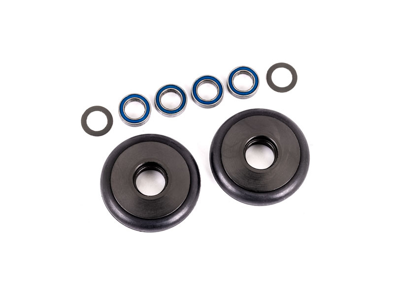 Tuningová kola wheelie z vysoce pevnostního hliníku 6061-T6 s designovým šedým eloxováním a gumovým kroužkem (2 ks), 4x kuličková ložiska 5x8x2.5 mm, 2x podložka 5x8x0.3 mm.