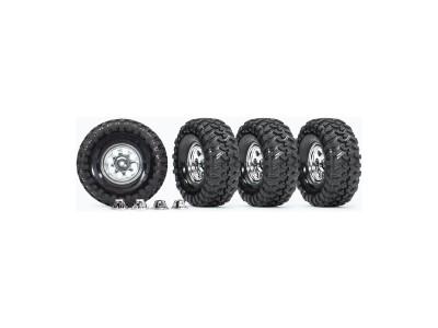 Traxxas kolo 1.9", disk classic chromovaný, pneu Canyon Trail (4) - kompletní, s nalepenými pneumatikami, včetně krytek náboje. Měkká směs S1. Určeno pro montáž na díl TRA8255.