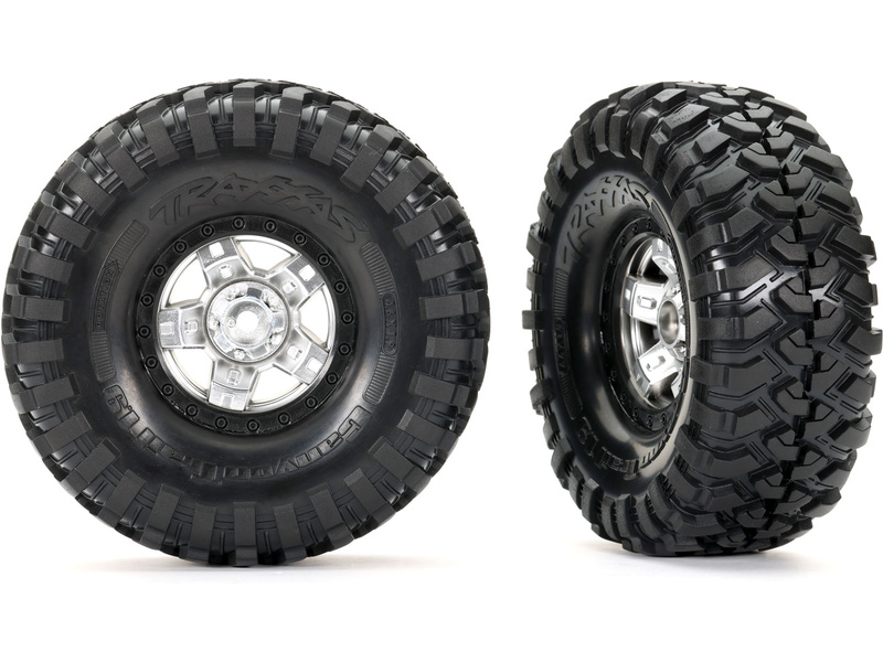 Kompletní univerzální kola pro RC modely aut TRX-4. Disky polomatný chrom TRX-4 Sport s imitací Beadlock. Pneumatikami Canyon Trail. Rozměr disku ø53x26mm mm. Celkový rozměr ø118x48 mm. Unašeč je šestihran 12 mm s offsetem 10 mm.