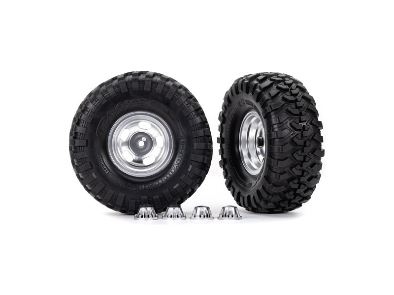 Kompletní univerzální kola. Polomatně chromované disky s pneumatikami Canyon Trail pro modely TRX-4/6 (2 ks v balení). Rozměr disku ø2.2". Celkový rozměr ø5,3". Unašeč je šestihran 12 mm. Určeno pro modely s hřídelí TRA8255A.