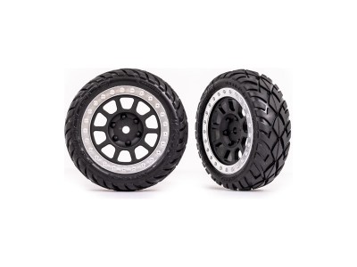 Kompletní přední kola pro auta 1:10 (Bandit). Disk šedý/chromovaný. Pneumatiky Anaconda.