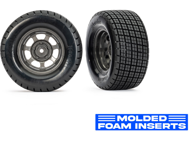 Kompletní kola (2WD přední), pro RC auto Traxxas Slash Mudboss. Disk dirt oval šedý 2.2/3.0", s nalepenou pneumatikou Hoosier a prémiovou tvarovanou pěnovou vložkou s vysokou hustotou. Unašeč je šestihran 12 mm.