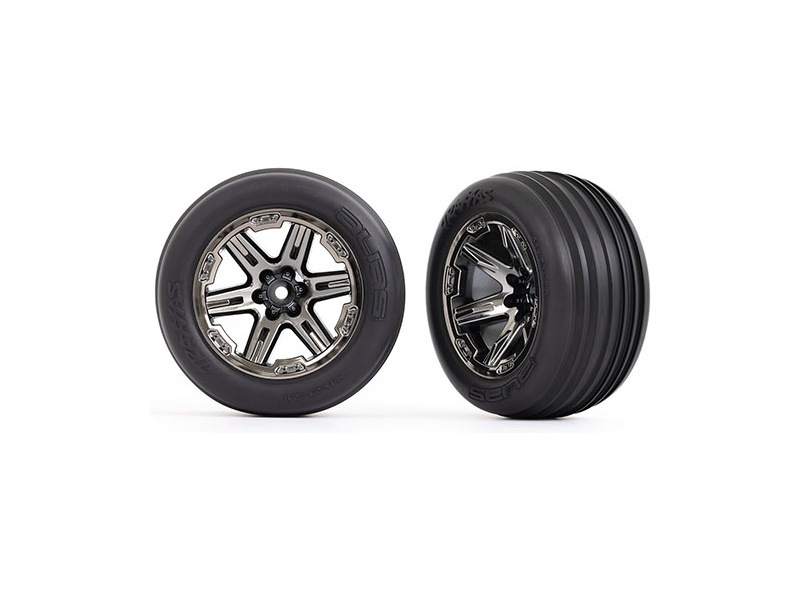 Kompletní přední kola 2.8" RXT pro elektro auta 1:10. Disky černý chrom s nalepenými pneumatikami Ribbed a vložkou.