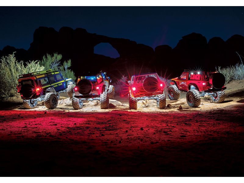 Traxxas LED osvětlení Pro Scale, pro modely Traxxas TRX-4 a TRX-6. Funkční brzdová a zpátečková světla, funkční blinkry, funkční výstražná světla, koncová světla, nastavitelná intenzita předních světlometů. Možnost doplnění dalšího osvětlení. Autentické funkce světel.