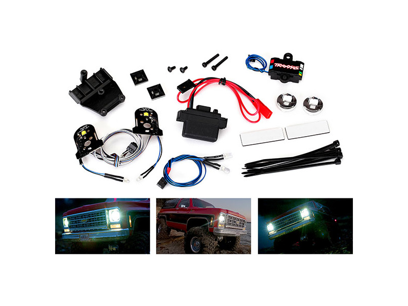 Sadu lze zapojit v kombinaci se sadou Pro Scale (prodává se samostatně) a instalační sadou (pro model Chevrolet K10) nebo instalační sadou (pro model Chevrolet K5 Blazer) (prodávají se samostatně) - získáte tím plnohodnotné chování světel jako na skutečném autě - funkční brzdová a zpátečková světla, funkční směrovky a výstražná světla, nastavitelná intenzita světlometů. Pokud ještě doplníte Bluetooth modulu (prodává se samostatně), můžete navíc osvětlení ovládat dálkově, zapínat jednotlivé části osvětlení, nebo proporcionálně měnit intenzitu světlometů. To vše v přehledné grafické aplikaci Traxxas Link, kterou si bezplatně naistalujete do chytrého telefonu.