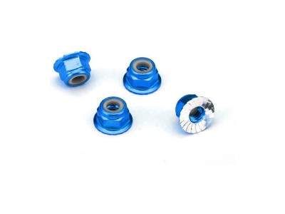 Samojistná matice M4 s drážkovaným límcem, materiál modře eloxovaný hliník. Balení obsahuje 4 ks.