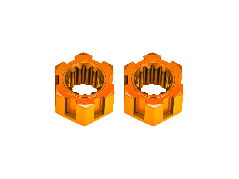 Traxxas náboj předního kola hliníkový oranžový (2). Vyrobeno z velmi odolného hliníku 6061-T6 s barevným eloxováním. Drážkovaný šestihran 24 mm.