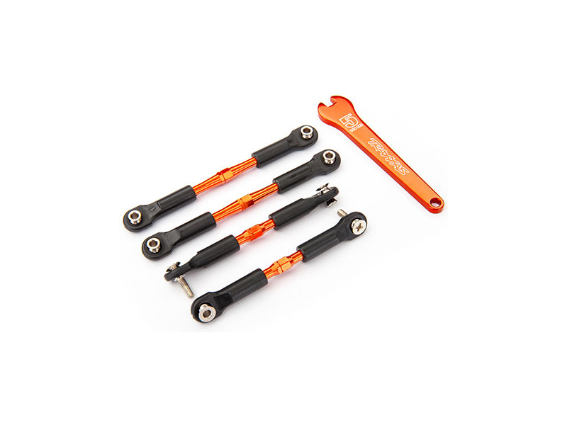 Sada dvou předních a dvou zadních hliníkových oranžově eloxovaných spojovaček. Vzájemná vzdálenost kulových čepů je 69 / 82 mm. Délka samotný hliníkové spojovačky je 39 / 49 mm. Zašroubováním resp. vyšroubováním koncovek lze zmenšit resp. zvětšit vzdálenost v rozsahu cca ±5 mm.