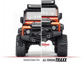 Pásy Traxx zvýší světlu výšku modelu a výrazně zvětší nájezdový a výjezdový úhel, díky tomu překonáte i takřka kolmé a vysoké překážky před Vámi. Pásy jsou také širší, což dodá modelu TRX-4 ještě více stability při naklonění.