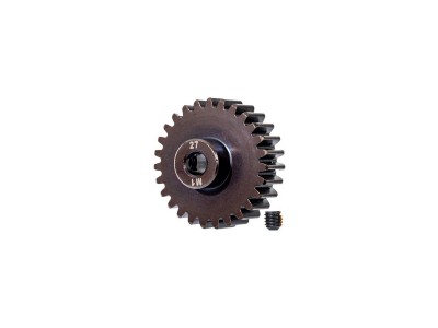 Traxxas pastorek na hřídel 5 mm s 27 zuby a modulem ozubení 1M pro RC modely aut. Vyrobeno z kalené oceli. Součástí balení je stavěcí šroub.