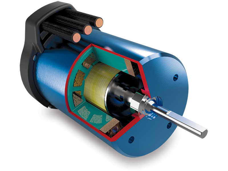 Motor je řady 550, má 4-pólovou konstrukci, která oproti dvoupólové verzi zajišťuje až dvojnásobný kroutící moment. Rotor je dynamicky vyvážen a pro zvýšení pevnosti opředen kevlarovou tkaninou.